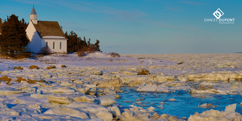 Nous visiterons plusieurs baies et quais, ainsi que ce site pour y photographier cette chapelle. Il sera alors important de bien ajuster l’exposition afin de conserver les détails de la neige.