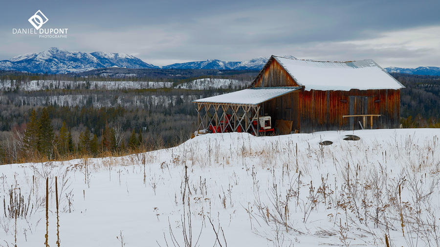 Nous ferons quelques arrêts pour photographier de vieilles granges qui s’intègrent parfaitement dans le paysage. Je vous inciterai aussi, selon les scènes photographiées, à employer le cadrage en format panoramique (16:9). Cela contribue à créer une dynamique différente dans les cadrages.