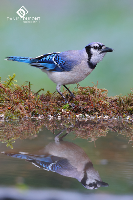 Plusieurs espèces de passereaux visitent le bassin de réflexion à cette période de l’année, dont plusieurs Geais bleus.