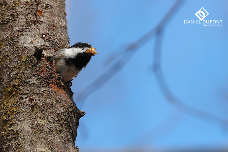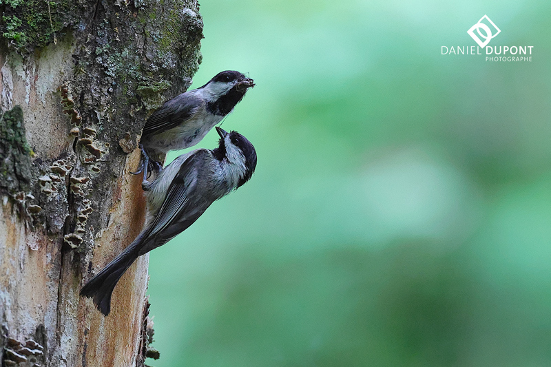 Ce couple de Mésanges à tête noire a niché dans mon jardin dans le même arbre que l’année précédente. Malheureusement, l’arbre est tombé en début d’hiver, mais deux autres arbres morts sont à proximité donc il est fort possible que le couple niche à nouveau sur le même territoire.