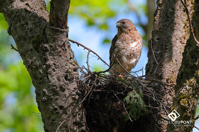 La Petite Buse niche au boisé depuis plusieurs années. Au printemps dernier, j’ai découvert le nid actif et y ai installé une cache depuis laquelle j’ai animé des ateliers photo.