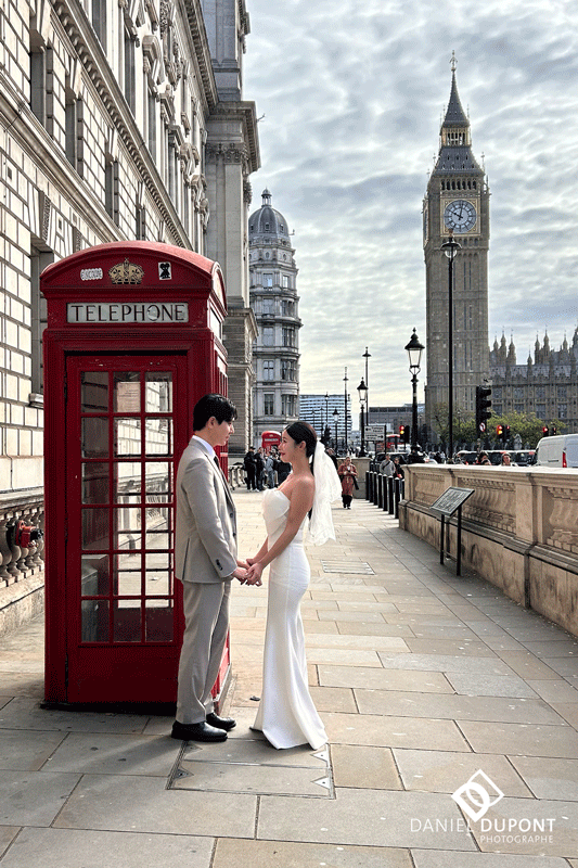 Nous tenterons d’intégrer des cabines téléphoniques rouges emblématiques de la ville dans nos cadrages en incluant aussi des icônes de la ville comme Big Ben.