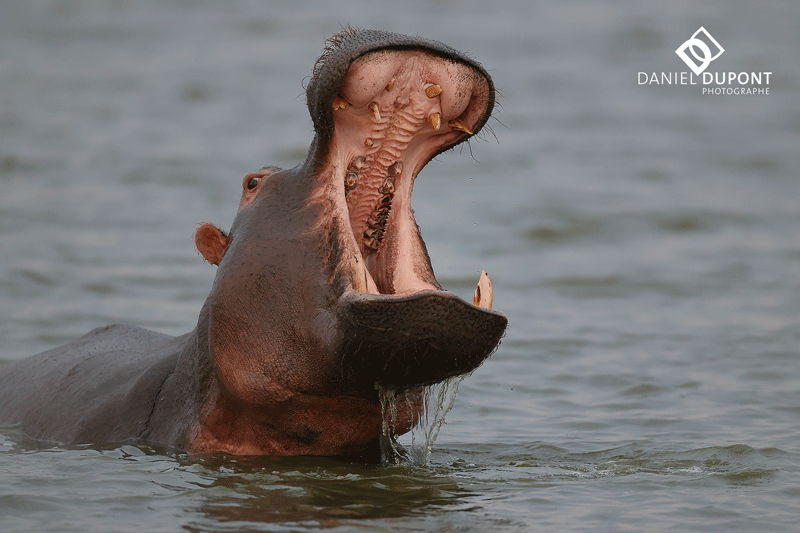 Nous avons photographié des Hippopotames à plusieurs reprises et à un certain arrêt, ceux-ci ont fait des compétions de bouche ouverte à notre plus grand plaisir.