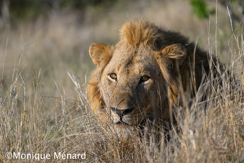 En neuf voyages dans le parc, c’est la deuxième fois que je photographie plus d’une cinquantaine de Lions. Nous avons rencontré trois groupes de mâles adultes, dont celui-ci tentant d’éloigner les mouches en secouant la tête.