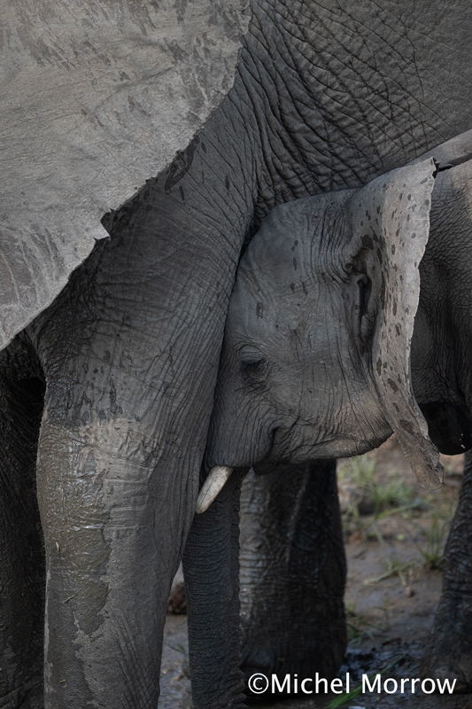 Les communautés d’éléphants sont omni présente dans le parc et j’ai en l’occasion de prendre cette photo d’un moment attendrissant d’une maman éléphant et son bébé.